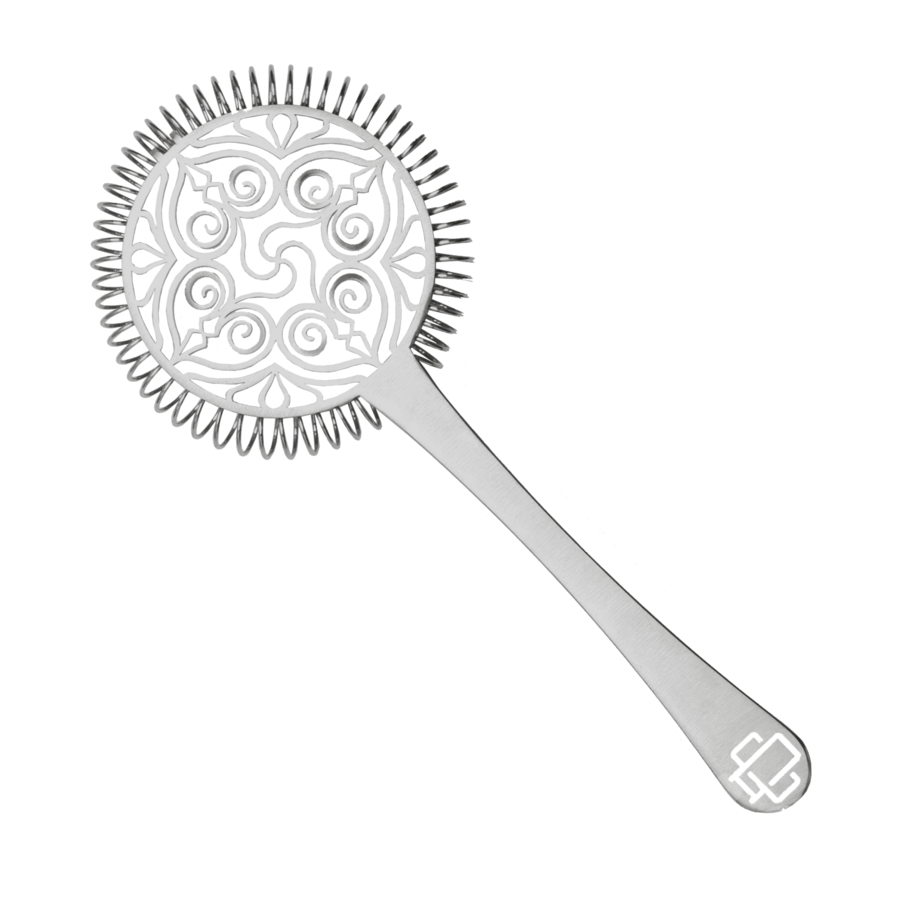 Классический хоторн-стрейнер с эксклюзивным узором на рабочей поверхности, без ушек. Благодаря новой системе встраивания пружины, обеспечивается плотное прилегание к краям смесительной емкости. Полностью ручная работа. Производство CocktailDesign